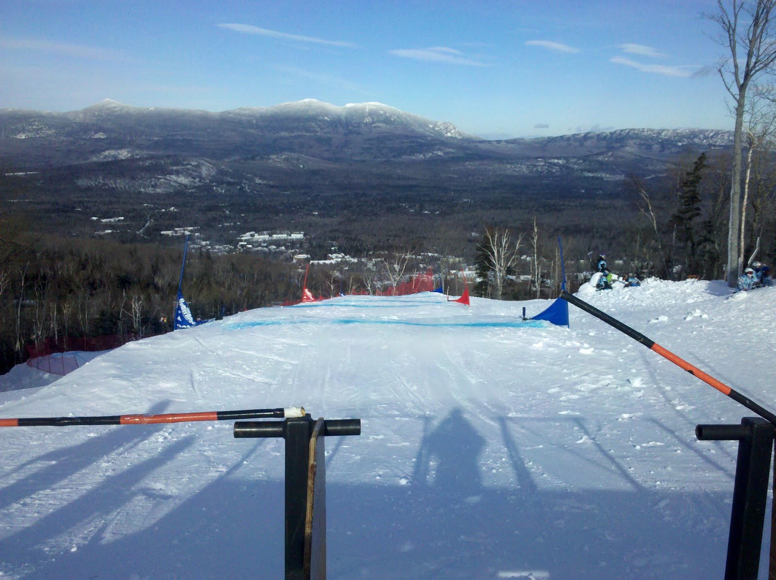 After walking the course, the team was able to slip it twice before...THUNDER. That's right. Thunder. In Maine in January. Lifts shut down and we ate lunch. After a long wait, the lifts finally opened again- for five minutes before another thunder clap shut them down yet again.